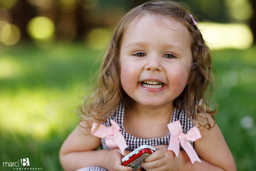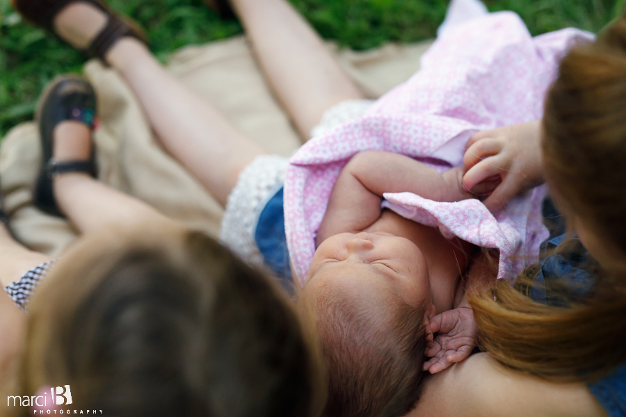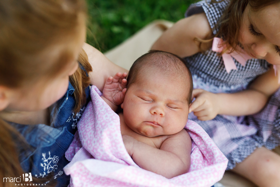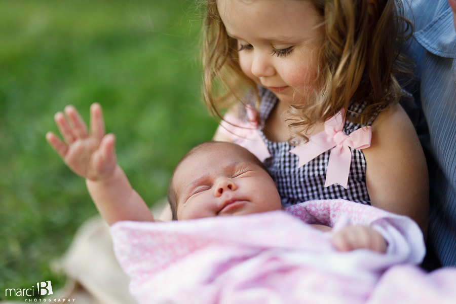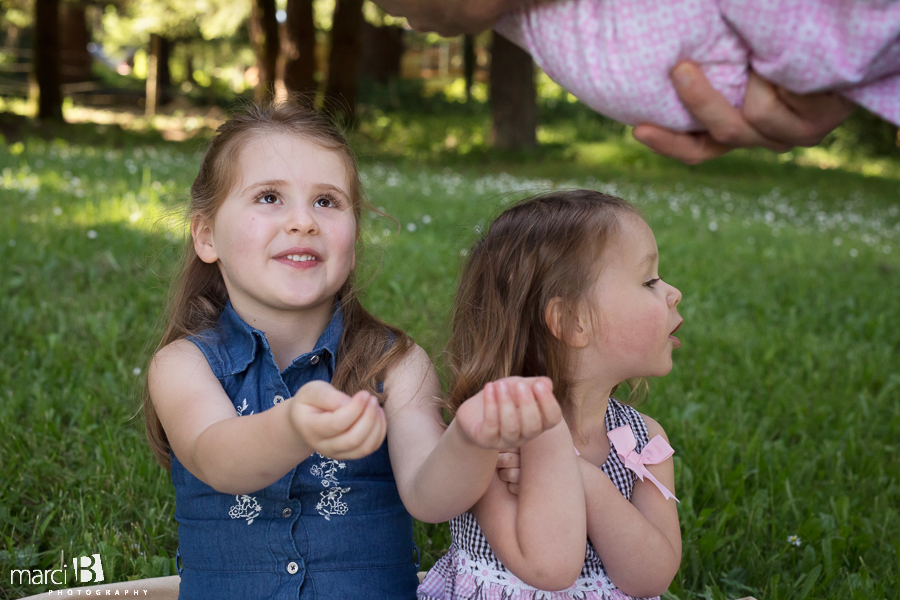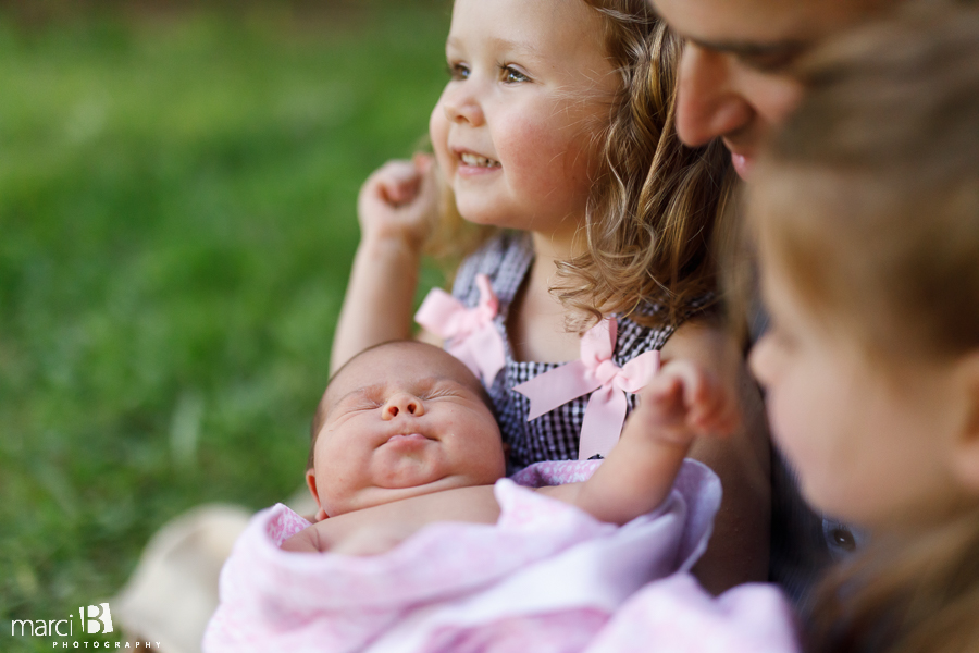 I love how kid’s expressions don’t lie. She was intrigued, but didn’t last long holding her little sister.