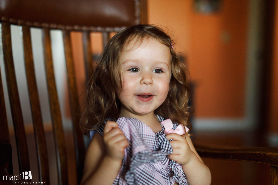 I asked if she would sit in the rocking chair to test the light for me. She’s so happy to please!