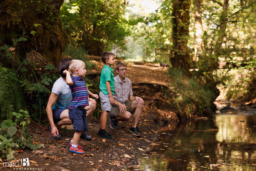 YES! Woohoo, that’s my type of photos!! I love the outdoors and so do these kids, so what better way to come away with photos filled with smiles and joy? There are soooo many things to do in the woods, starting with rock throwing. It’s even better when there’s water.